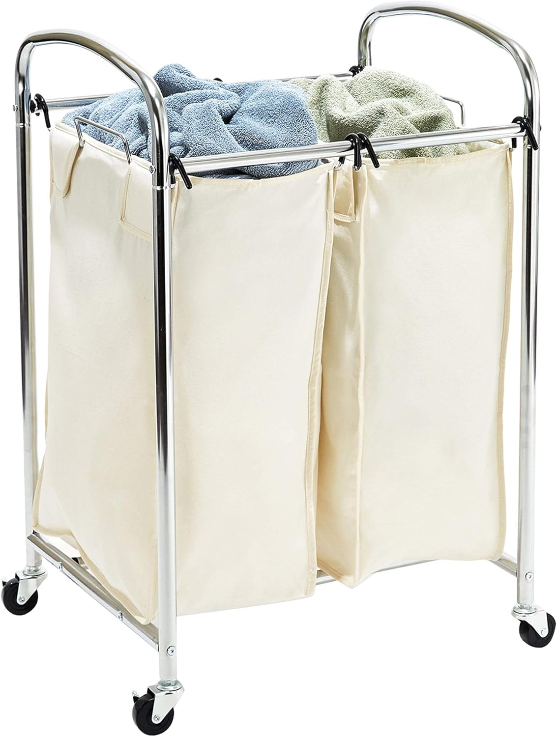 Whitmor 3 section rolling supreme laundry sorter with removable canvas bags. This canvas laundry hamper is made of strong materials with a solid metal wire frame. Household essentials four bag laundry sorter, chrome finish. Is the most respected american manufacturer of canvas, steeletex and polyethylene baskets, hampers & tote bags. 33 h x 38 w x 15 d;